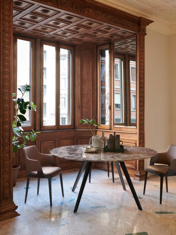 Velis стильное сочетание обивки и структуры дерева; определяя идеальную интеграцию между деталями в идеальном балансе: ножки и сиденье встречаются в раме; которая; оставаясь видимой; придает элегантность проекту.