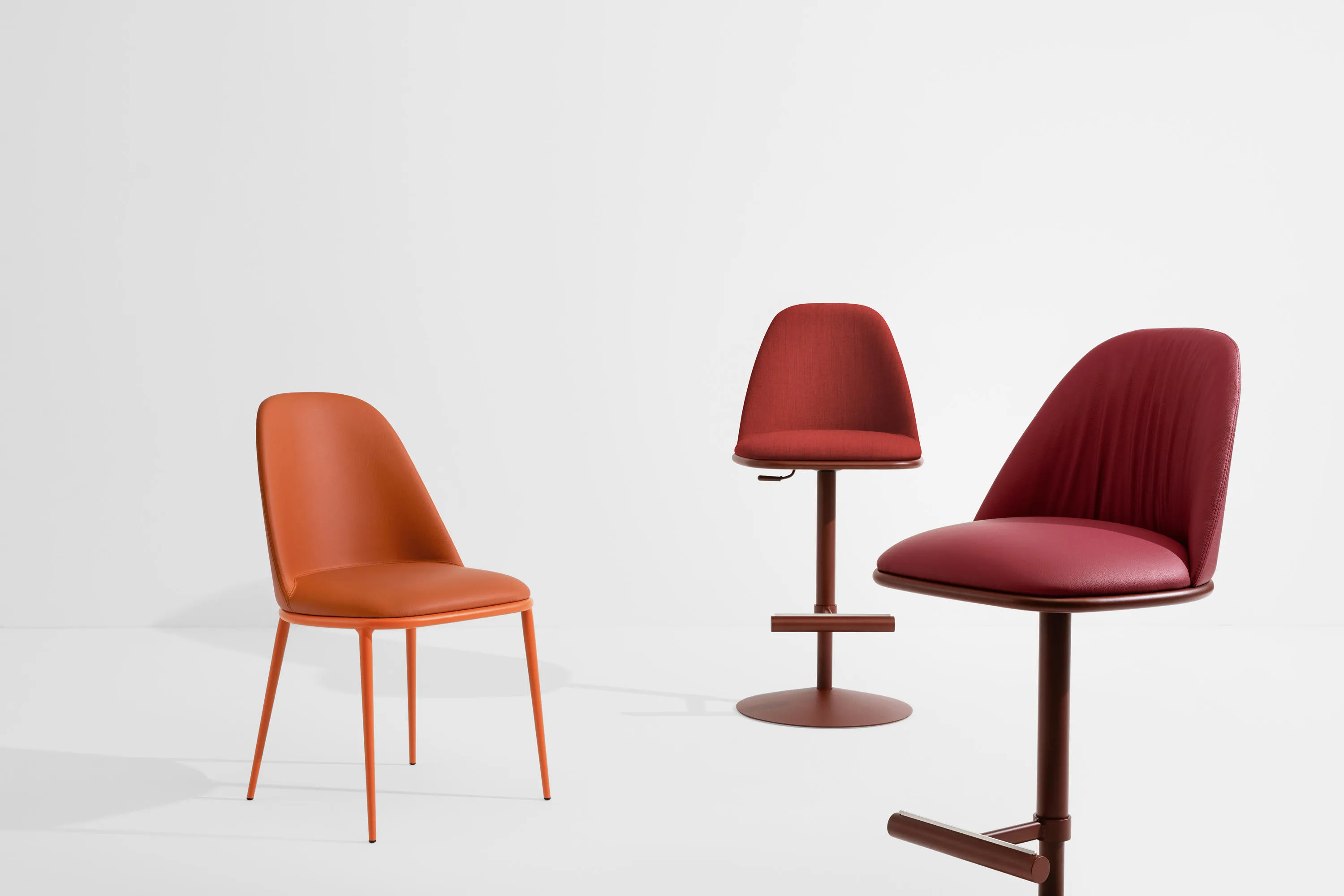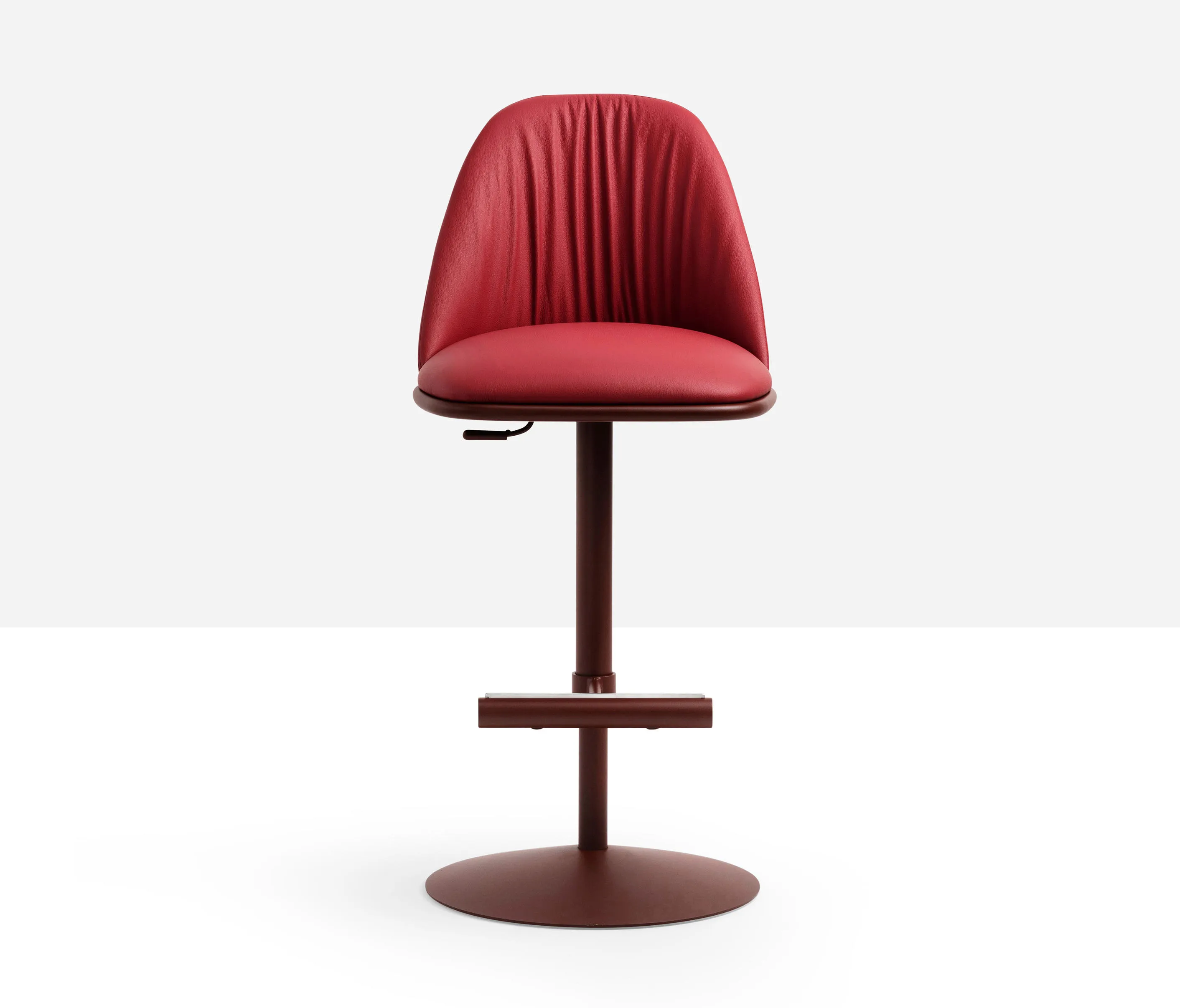 Барный стул Lea Deluxe с поворотным и регулируемым по высоте металлическим основанием. Сиденье и спинка обтянуты тканью, кожей или искусственной кожей, можно персонализировать с использованием другой ткани или цвета для передней и задней части. Версия Deluxe отличается элегантной драпировкой. Набивка выполнена из пены с эффектом памяти, обеспечивающей дополнительную мягкость и комфорт.