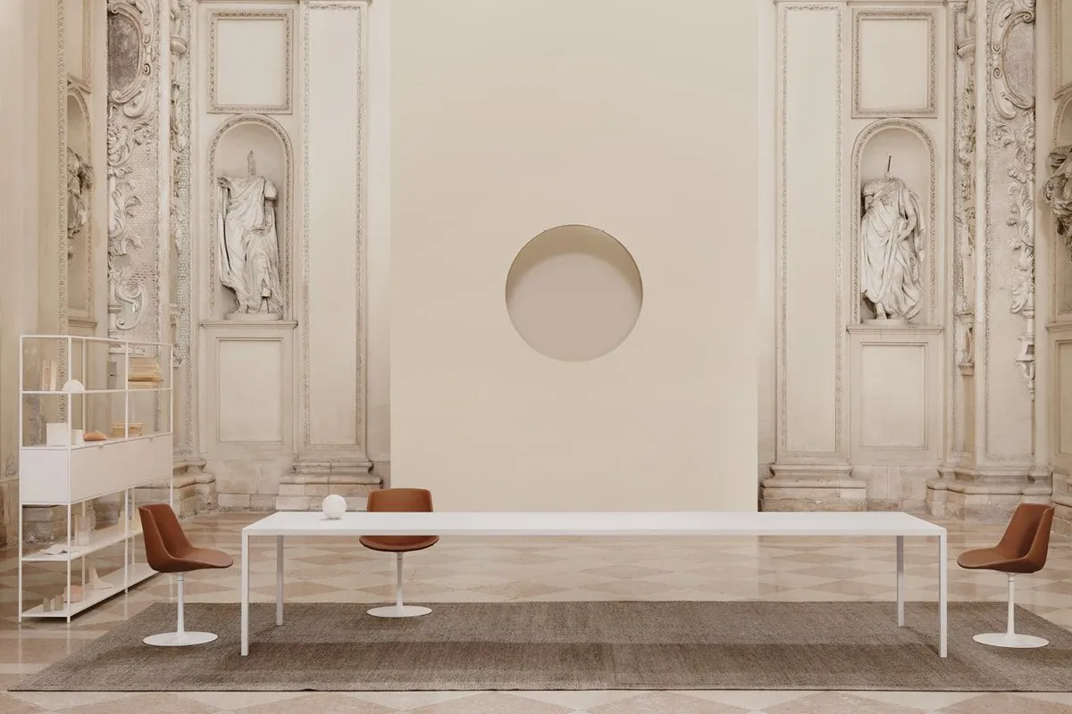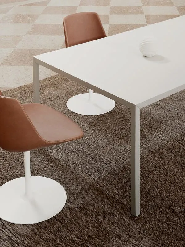 Кроме того, FLOW LEATHER покрыт двумя видами кожи. Кожа Anilina предлагается в семи различных цветах. Снаружи он микроперфорирован, а внутри гладкий. Это кожа премиум-класса, подходящая для особых домашних условий, таких как столовые, жилые помещения, а также для домашнего офиса и умных рабочих помещений. Кожа Nuvola, задуманная для деловых и общественных помещений, таких как рестораны, гостиницы, офисы, представляет собой кожу с микроперфорацией внутри и гладкую снаружи: это современное, динамичное, ударопрочное покрытие, которое временами напоминает внешний вид сидений спортивных автомобилей и представлен в одиннадцати цветовых тонах.