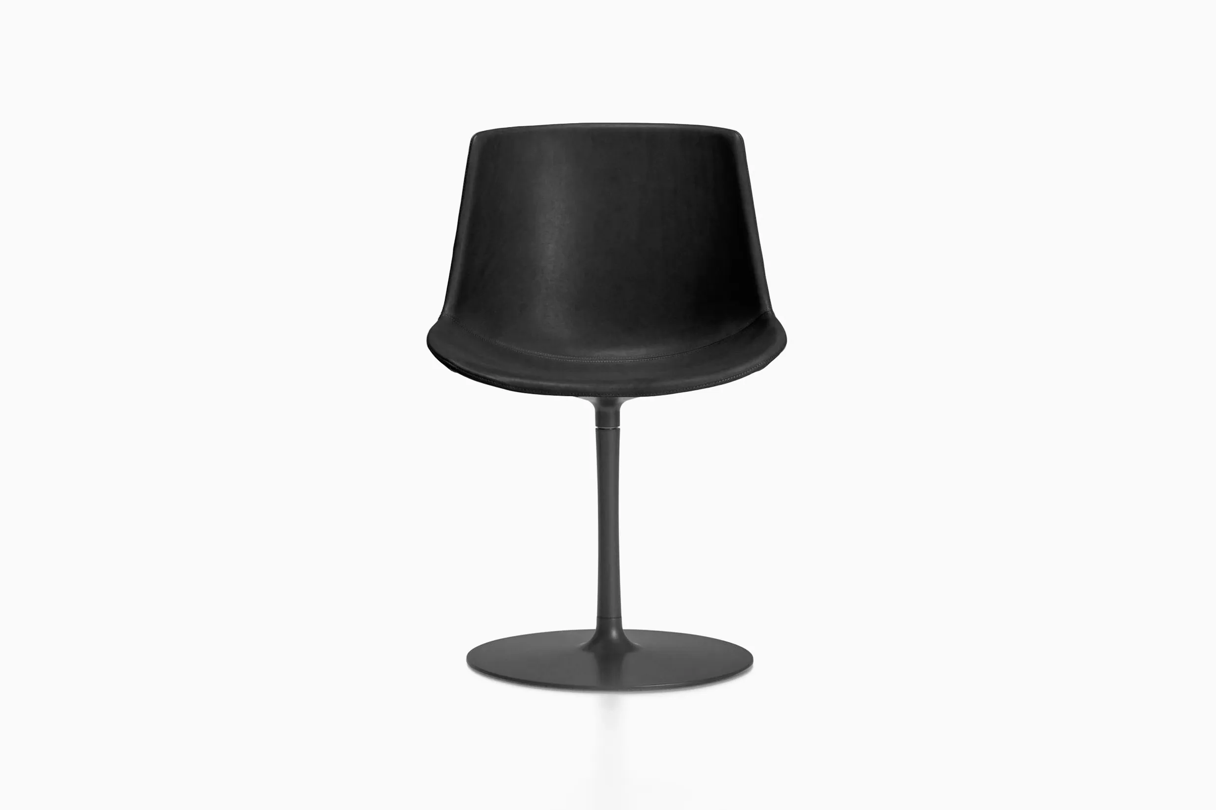 Строгая и универсальная обивка из гладкой зернистой кожи минерального дубления насыщенных и насыщенных цветов. Кресло отделано гладкой кожей снаружи и микроперфорированной кожей с однотонной строчкой внутри.