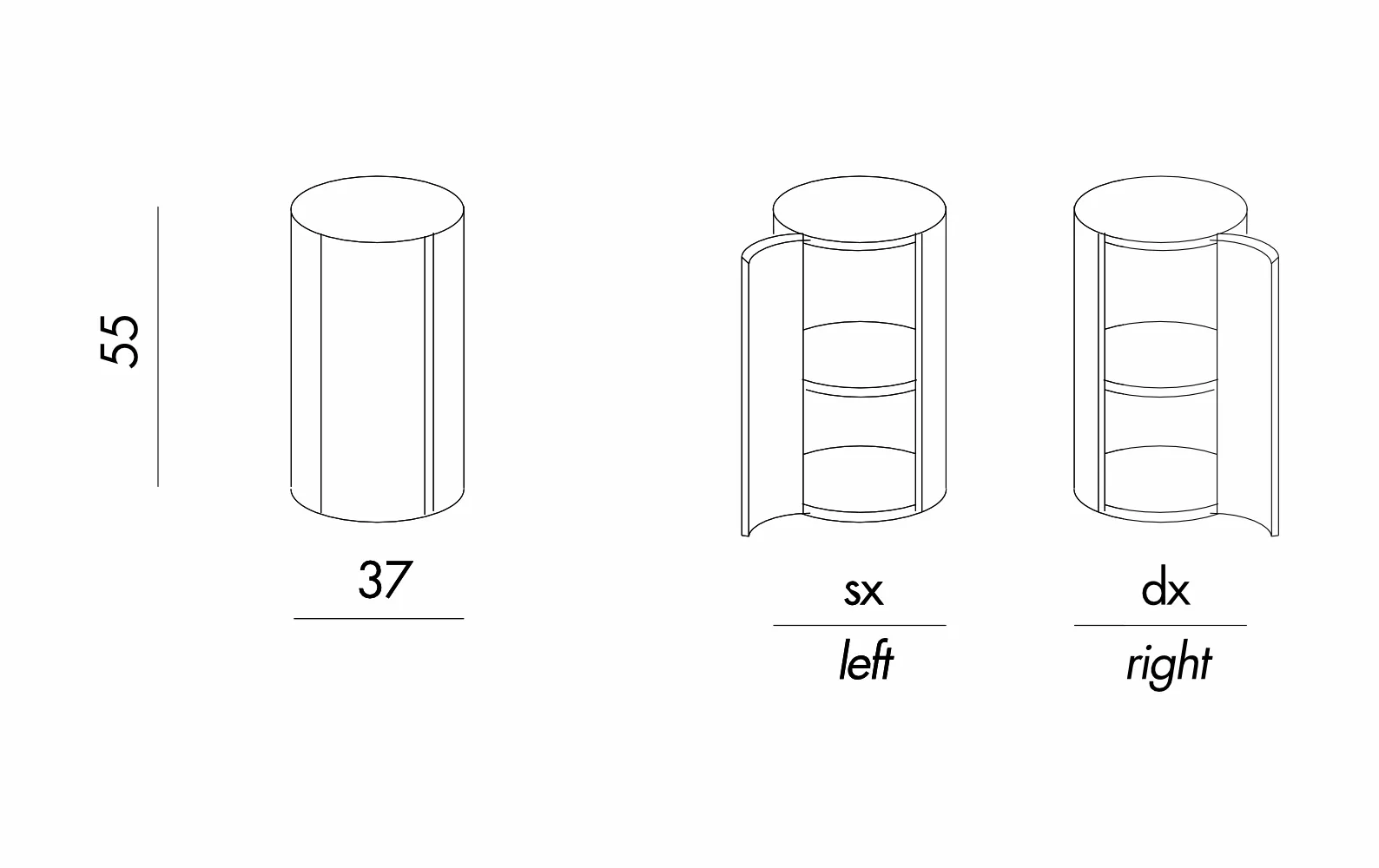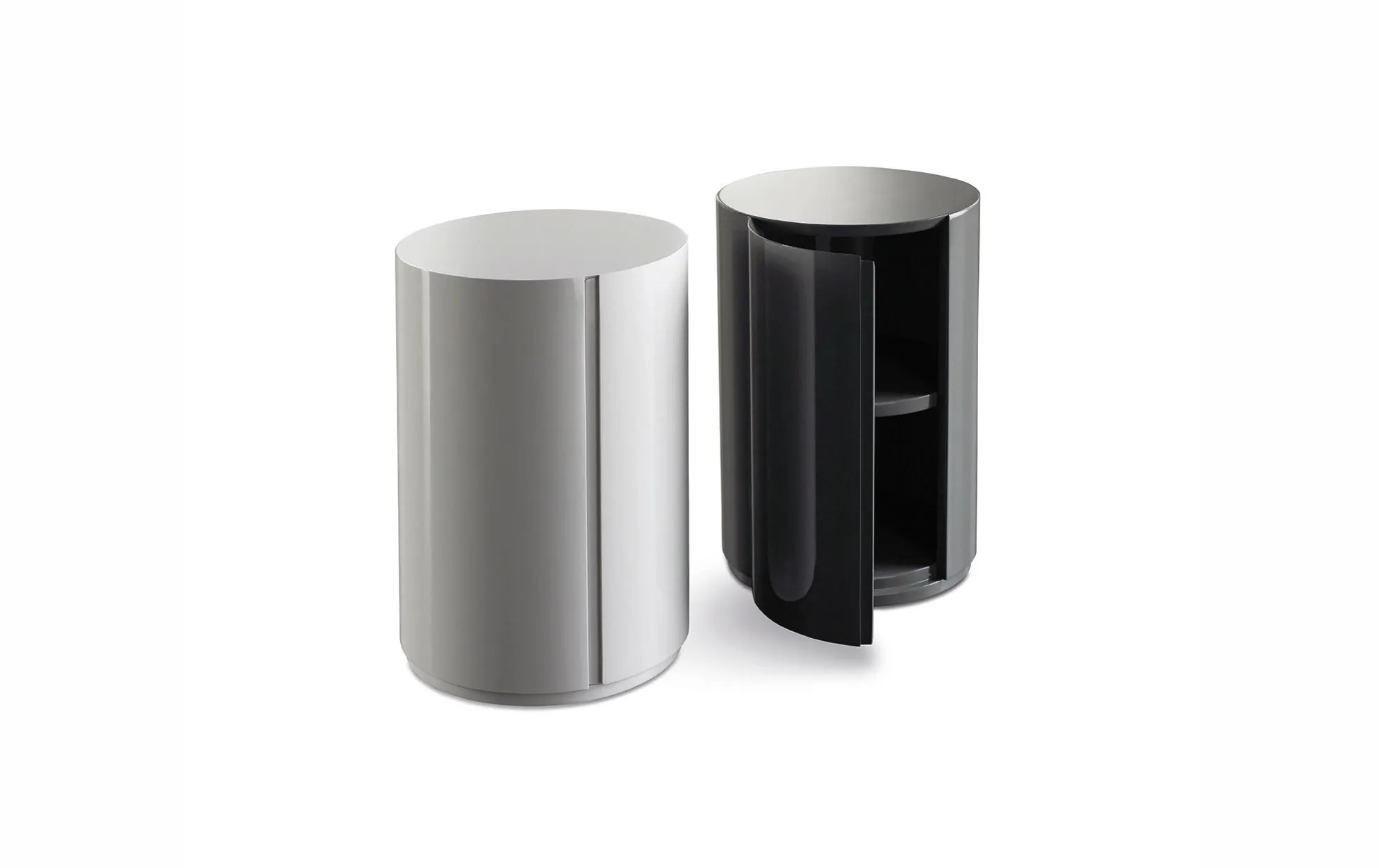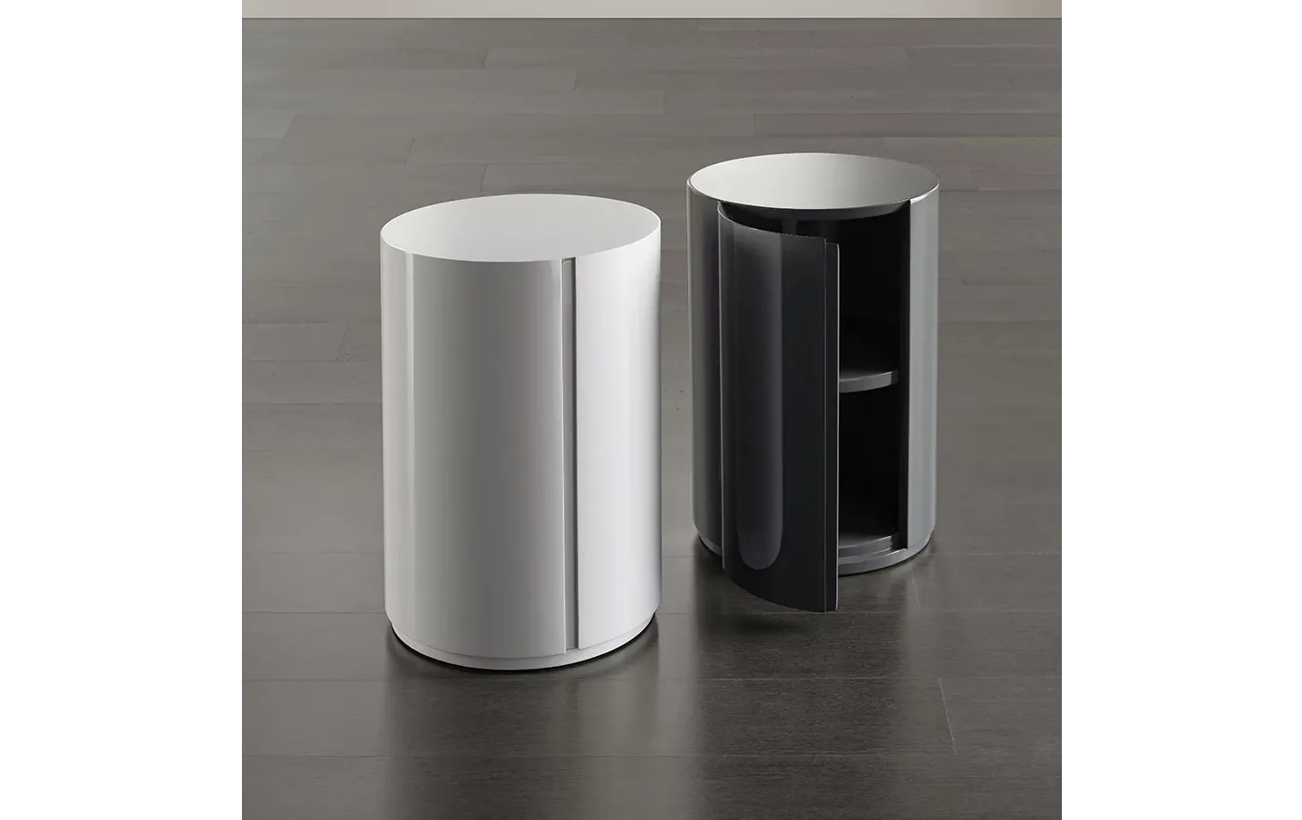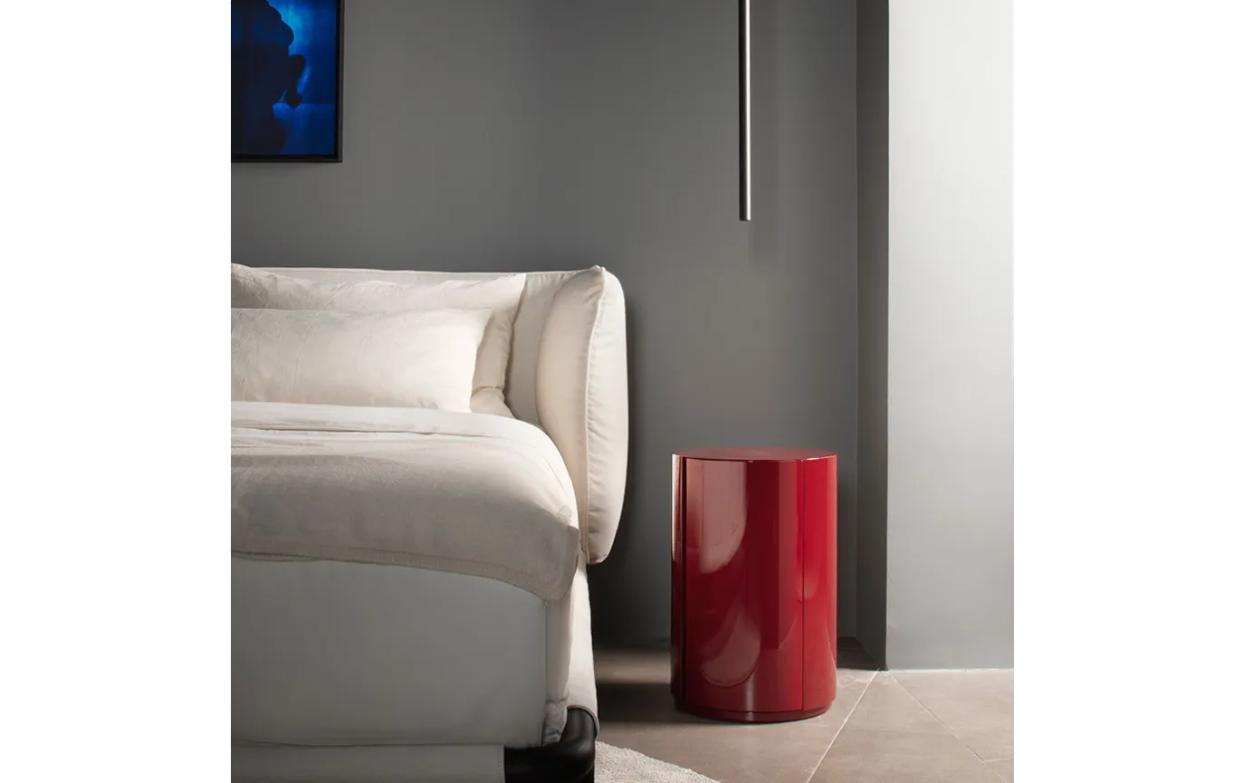 Прикроватная тумбочка Gong Due, созданная дизайнером Andrea Parisio, — это гармоничное сочетание футуристического дизайна и функциональности. Элегантная цилиндрическая форма придаёт модели утончённость, а удобная дверца (открывается на выбор – справа или слева) и внутренняя полка обеспечивают практичное хранение. Благодаря компактным размерам d37×h55 см, тумбочка идеально подходит даже для небольших спален, добавляя интерьеру стильный акцент.