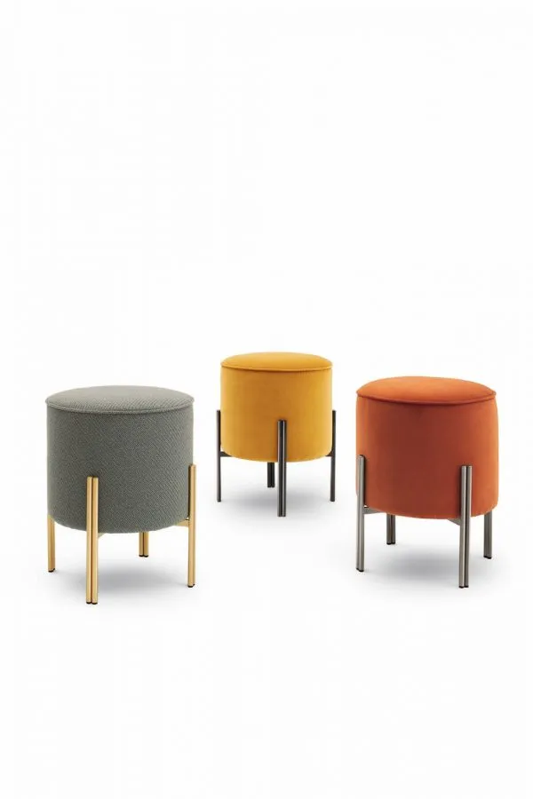 Пуф на четырех стальным ножках Puffoso популярной фабрики Bontempi станет хорошим выбором для оформления гостиной, прихожей или спальной комнаты. Отлично сочетается с туалетными столиками. Пуф со структурой из стали, с различными вариантами обивки из экокожи, бархата, ткани Mambò, Lulù, водонепроницаемого нубука, чистой шерсти, ткани Decò, Kvadrat field, Kvadrat Coda и кожи премиум-класса. Обшивка с пуфа не снимается. Цилиндрическое сиденье устанавливается на подставку, которая формируется из соединенных перекладинами ножек. Каждая опора представляет собой две совмещенные металлические трубки, покрытые напылением. Цвет можно выбрать из каталога.