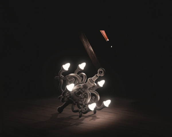 Напольная люстра; торшер FALLEN CHANDELIER от итальянского бренда Qeeboo.