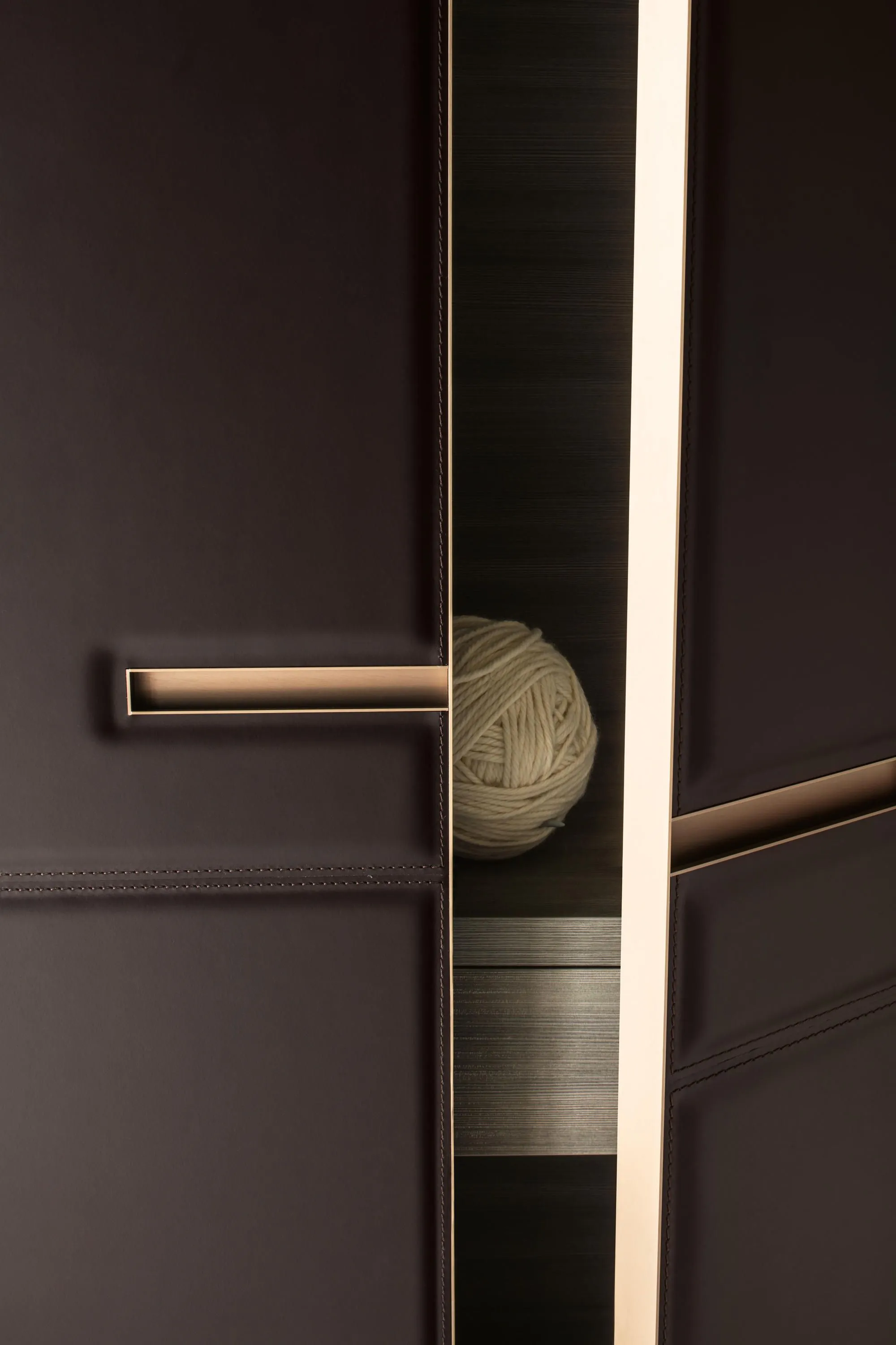 Гардеробные шкафы Warm от David Lopez Quincoces – это шкаф, характеризующийся богатой и важной эстетикой и в то же время естественным внешним видом благодаря кожаной отделке. Контрастные швы создают асимметричные графические узоры. Шкафы доступны в версиях с распашной и раздвижной дверью, а также угловые решения. Широкое внутреннее пространство предлагает несколько комбинаций для любых потребностей: ящики, витрины для брюк, ремней и обуви. Полка и подвесная штанга со встроенным освещением. Не забывая о драгоценных деталях из кожи и ткани, таких как коврики для ящиков и коробки для отделений рубашки.