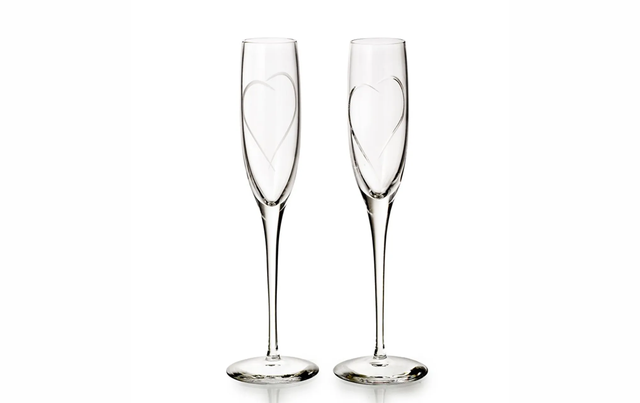 Пара бокалов для шампанского ручной работы с изысканным романтическим акцентом: грациозные ограненные линии пересекаются, образуя сердце. Набор из двух бокалов Namorados. Элегантная пара с утонченным романтическим дизайном: пересекающиеся ограненные грани создают изящный силуэт сердца. Так выпьем за любовь!
