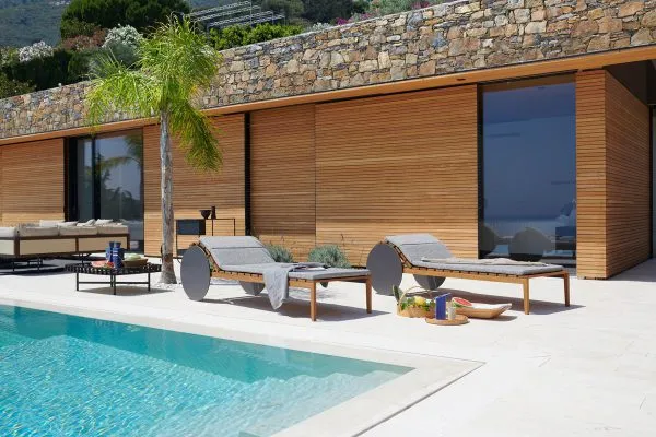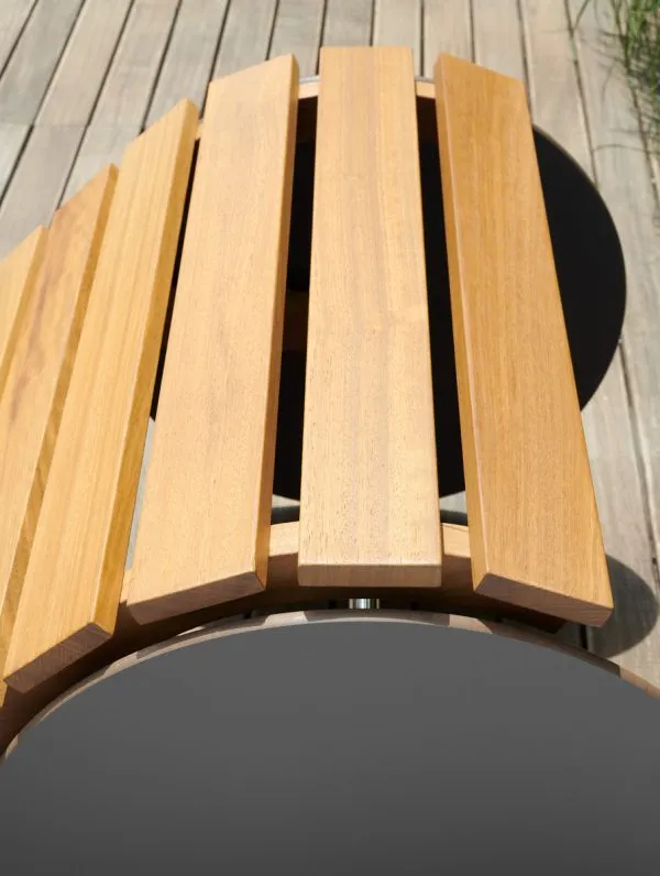 Благодаря конструкции из деревянных реек из ироко и мягкому матрасу; спинка Suno регулируется под различным углом наклона; что дает возможность наслаждаться отдыхом на свежем воздухе с максимальным комфортом.
