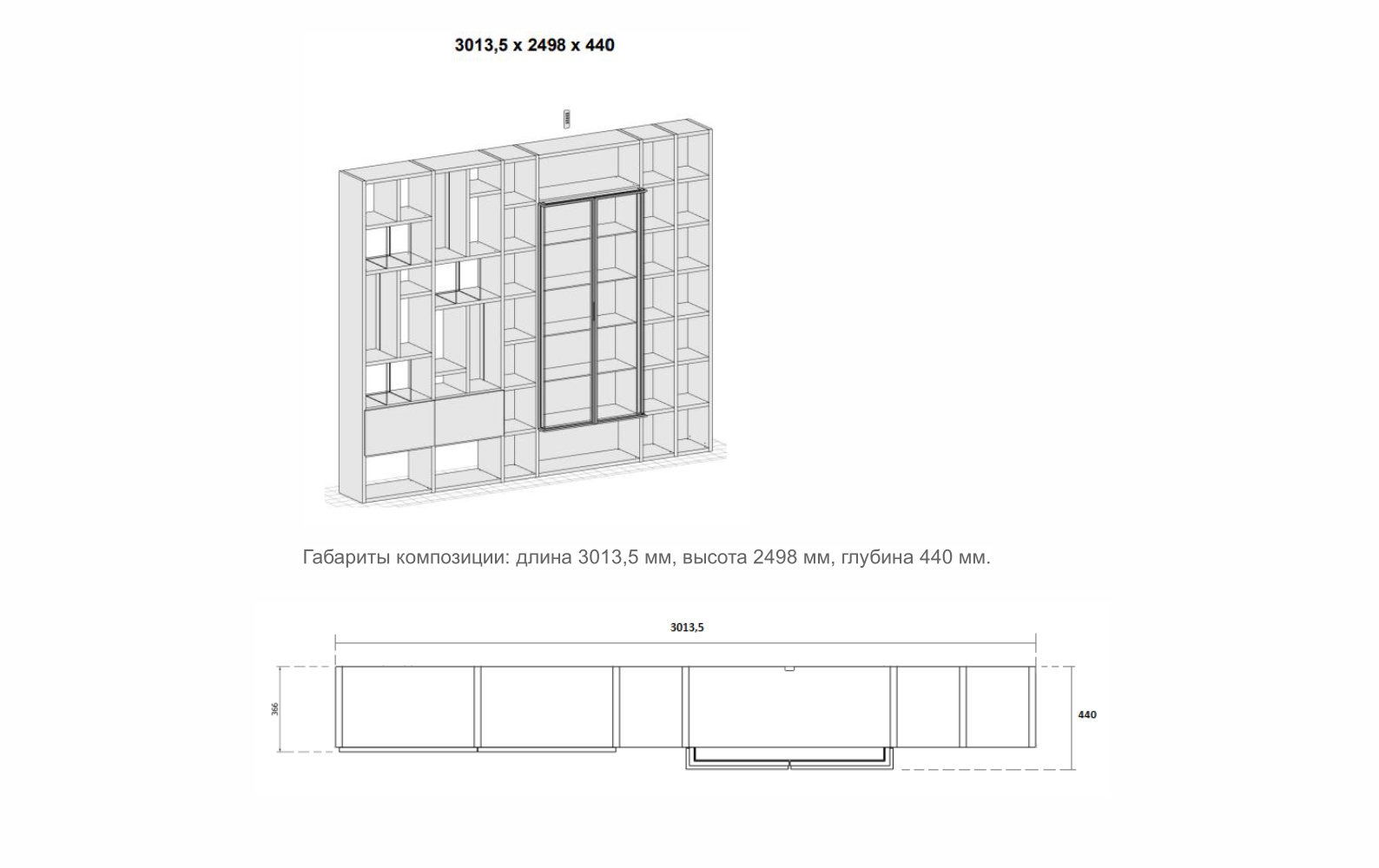 Размеры экспозиции: 3013 х 440 х h.2498 мм.