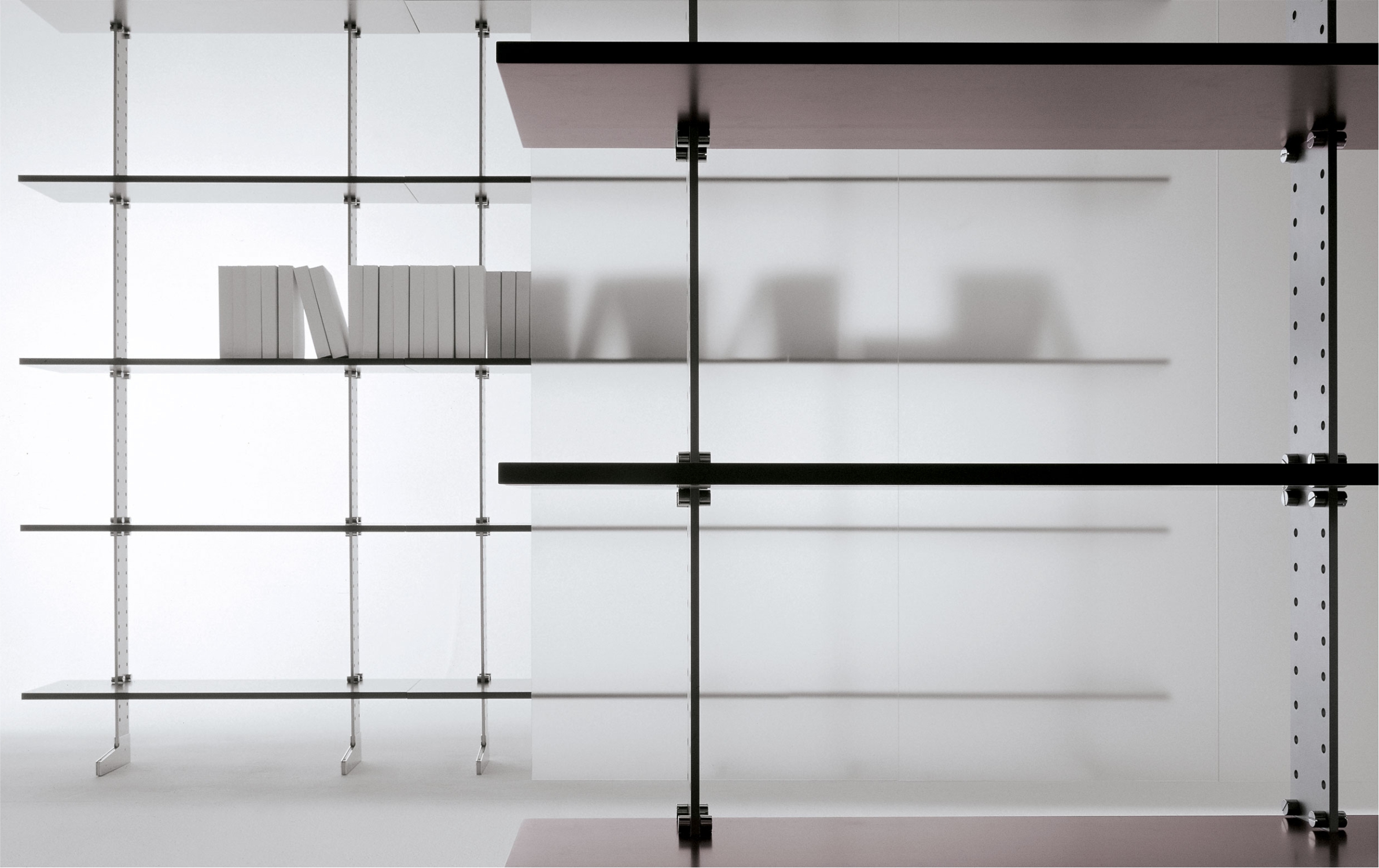• Полки: доступны в двух вариантах глубины — 320 мм и 460 мм. Более глубокие полки могут использоваться в качестве рабочего стола, подставки под телевизор или для размещения аудиовизуального оборудования. Полки выполнены из массива пихты, покрытого двумя слоями МДФ толщиной 3 мм, с отделкой матовым лаком или шпоном.