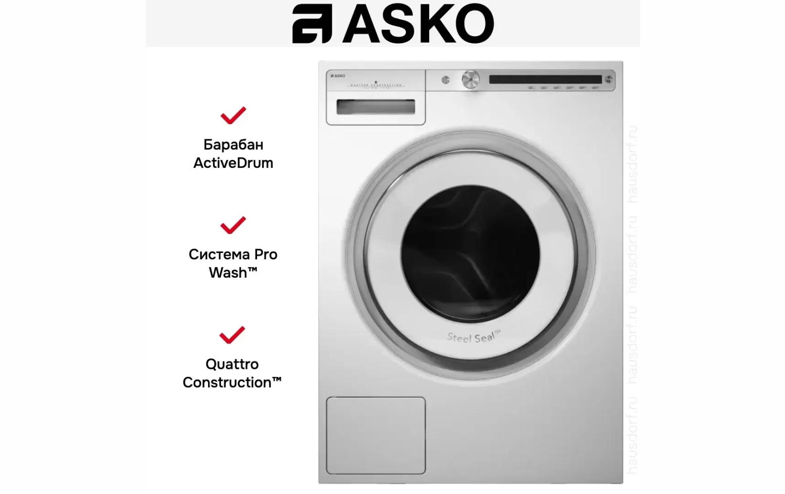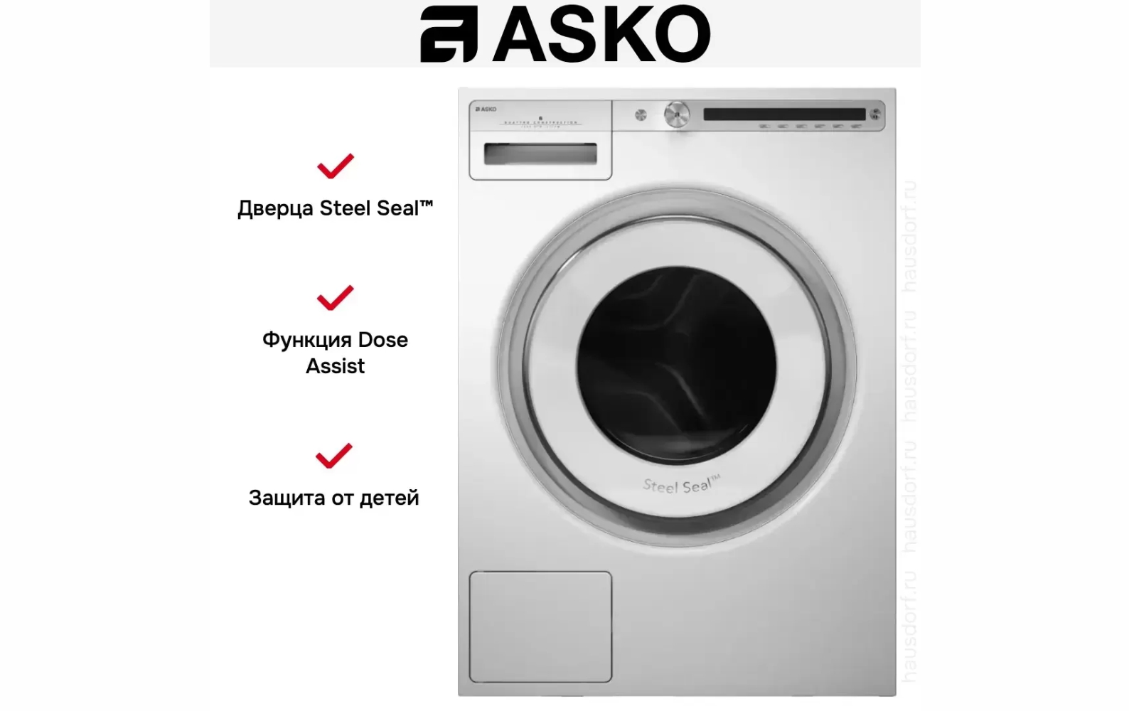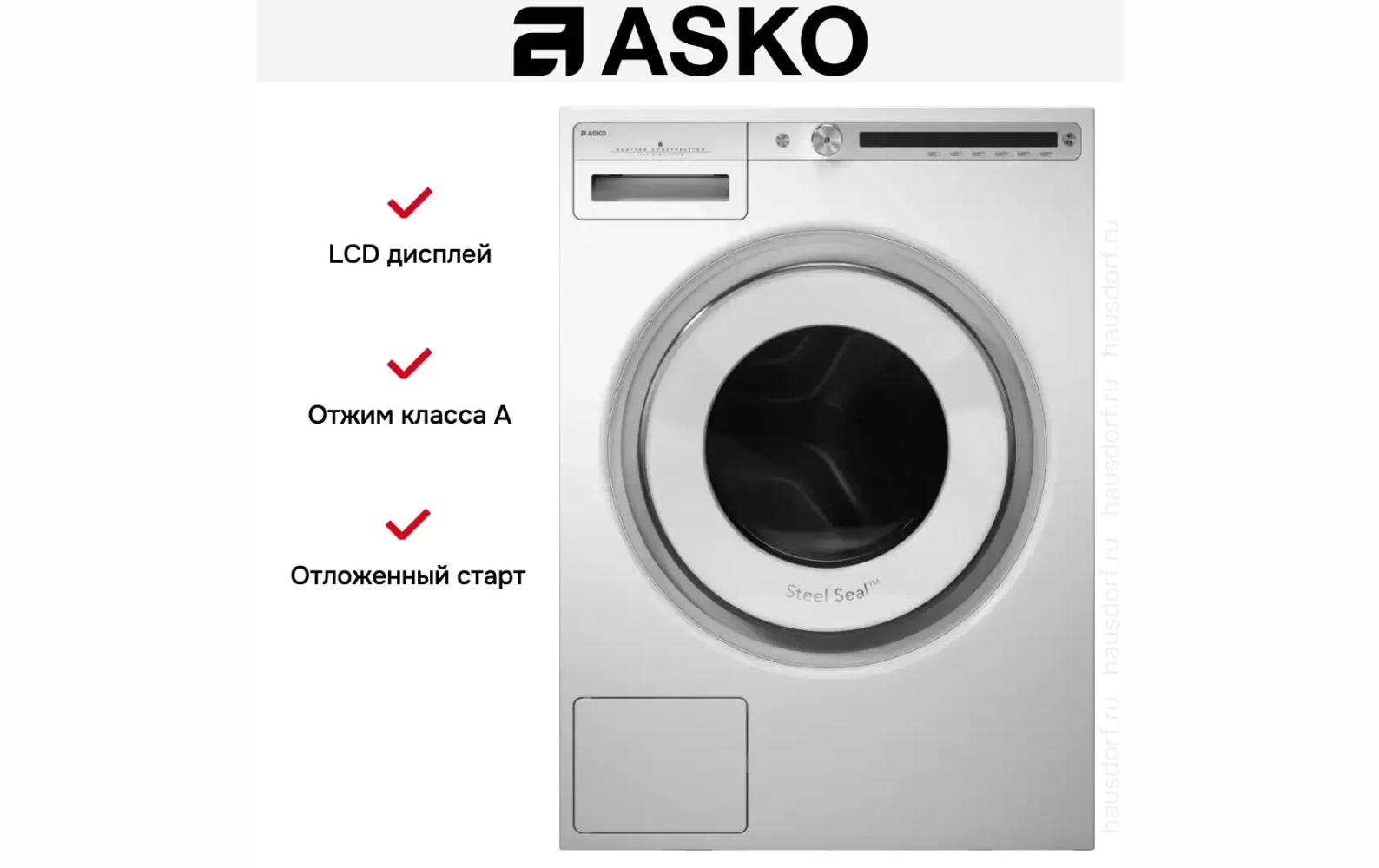 Полноразмерная модель шириной 60 см с весом загрузки 8 кг подойдет для большой семьи и прослужит много лет благодаря баку и барабану из нержавеющей стали. Установка на четырех опорах и чугунные противовесы придают устройству максимальную устойчивость и исключают вибрацию при отжиме. Люк диаметром 31 см может открываться на угол до 110 градусов, а дверца без резиновой манжеты отличается гигиеничностью. Предусмотрена защита от перелива и блокировка панели управления от детей, а также полная защита от протечек Aqua Block System. Машина относится к самому высокому классу энергопотребления A+++, что делает ее экономичным вариантом. Программа очистки барабана позволят сэкономить время и силы на обслуживание прибора. При необходимости пользователь может изменить текущие настройки и сохранить их в память устройства для быстрого к ним доступа. Благодаря таймеру можно запрограммировать время начала цикла на наиболее удобное. Например, это может быть ночной период, когда тарифы на электроэнергию ниже, чем днем. Тихая работа не создает дискомфорт при эксплуатации. Максимальный уровень шума при стирке в стиральной машине Аско W4086C. W/3 составляет всего 49 дБ. Устройство можно установить в колонну с сушильной машиной.