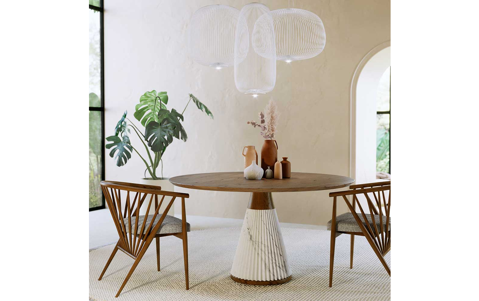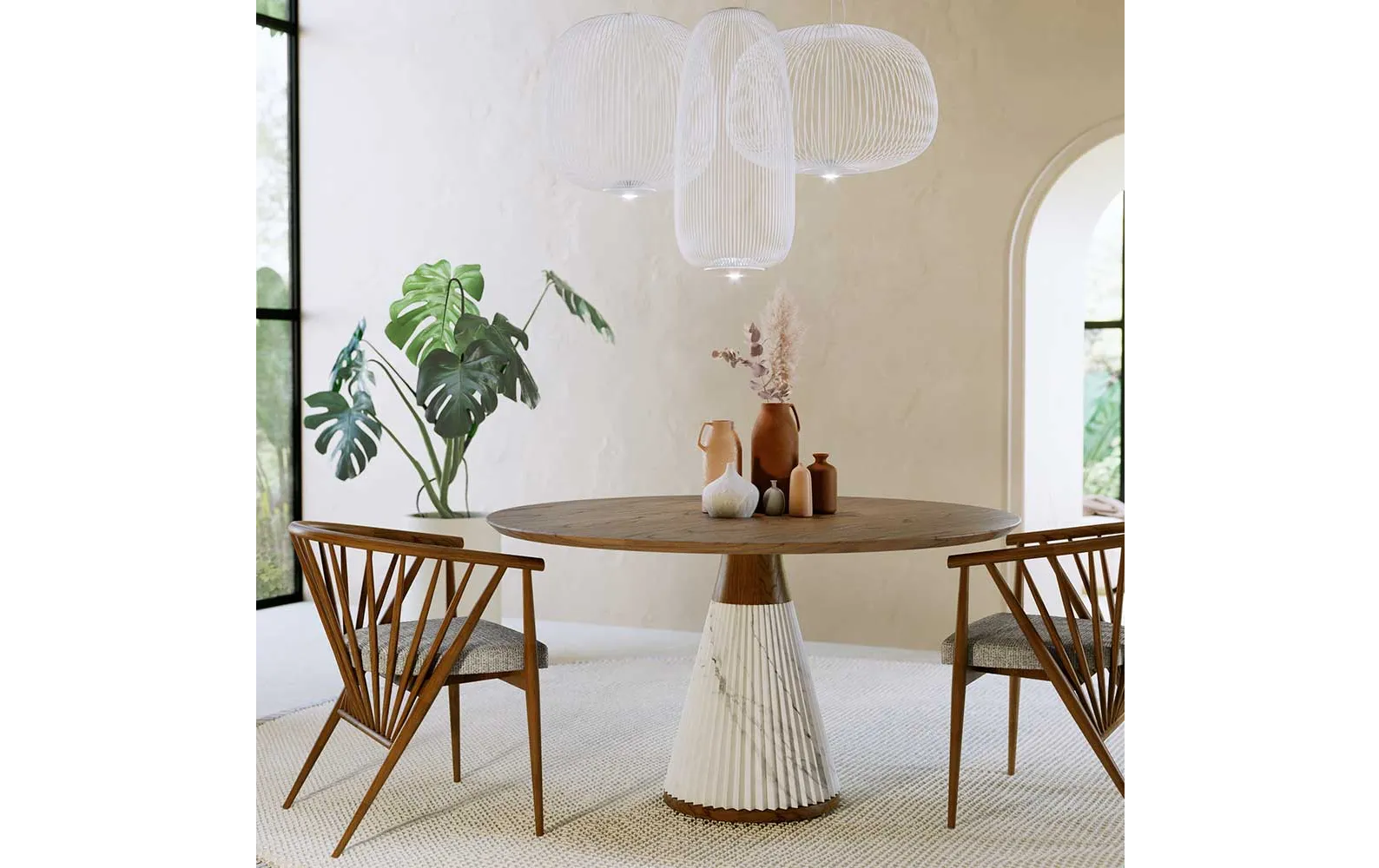 - Скульптурная эстетика: Сочетание мрамора и дерева делает стол выразительным арт-объектом, который гармонично вписывается в любой интерьер.
