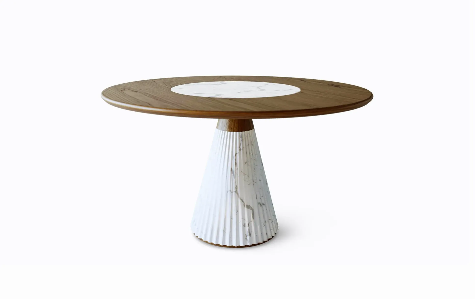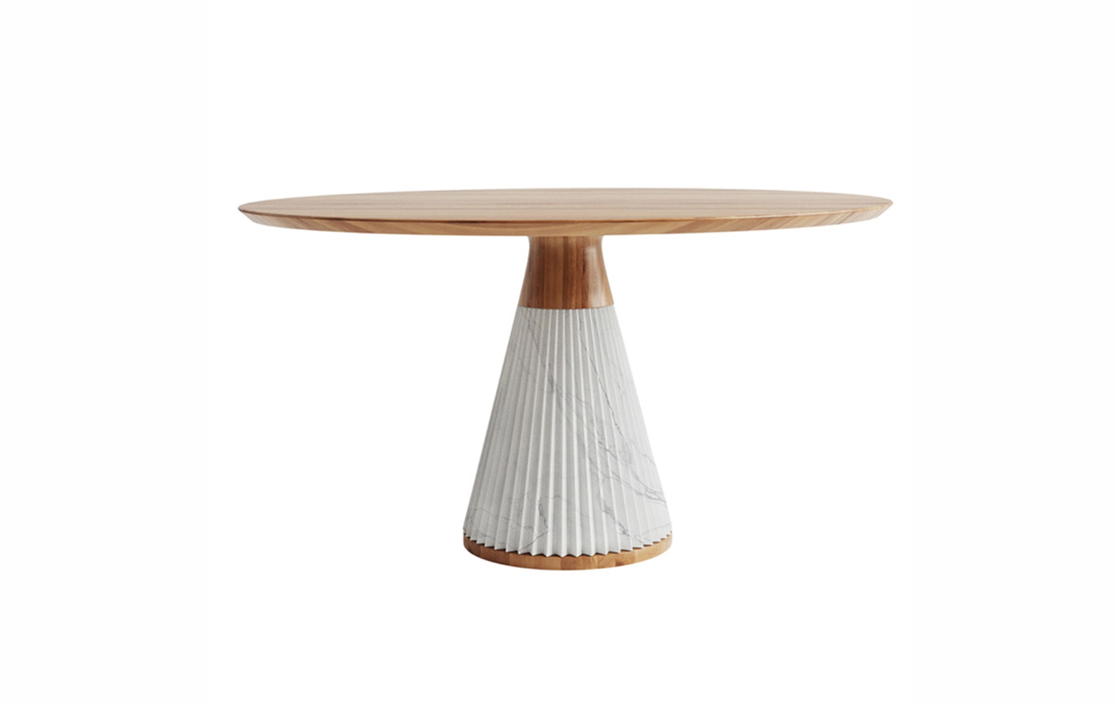 - Уникальный дизайн: Плиссированный мрамор и ясень создают скульптурный эффект, превращая стол в центральный элемент интерьера.