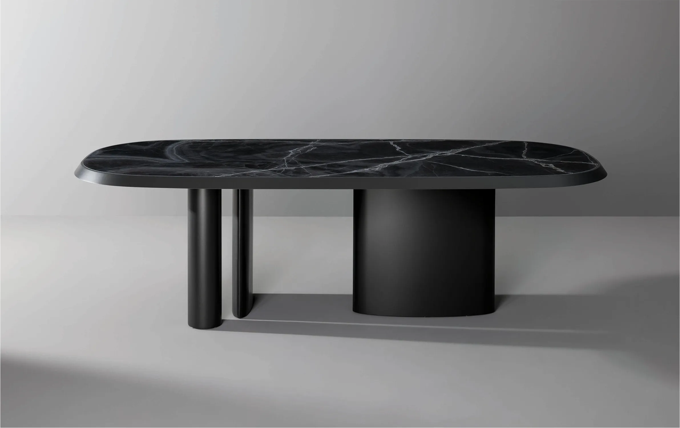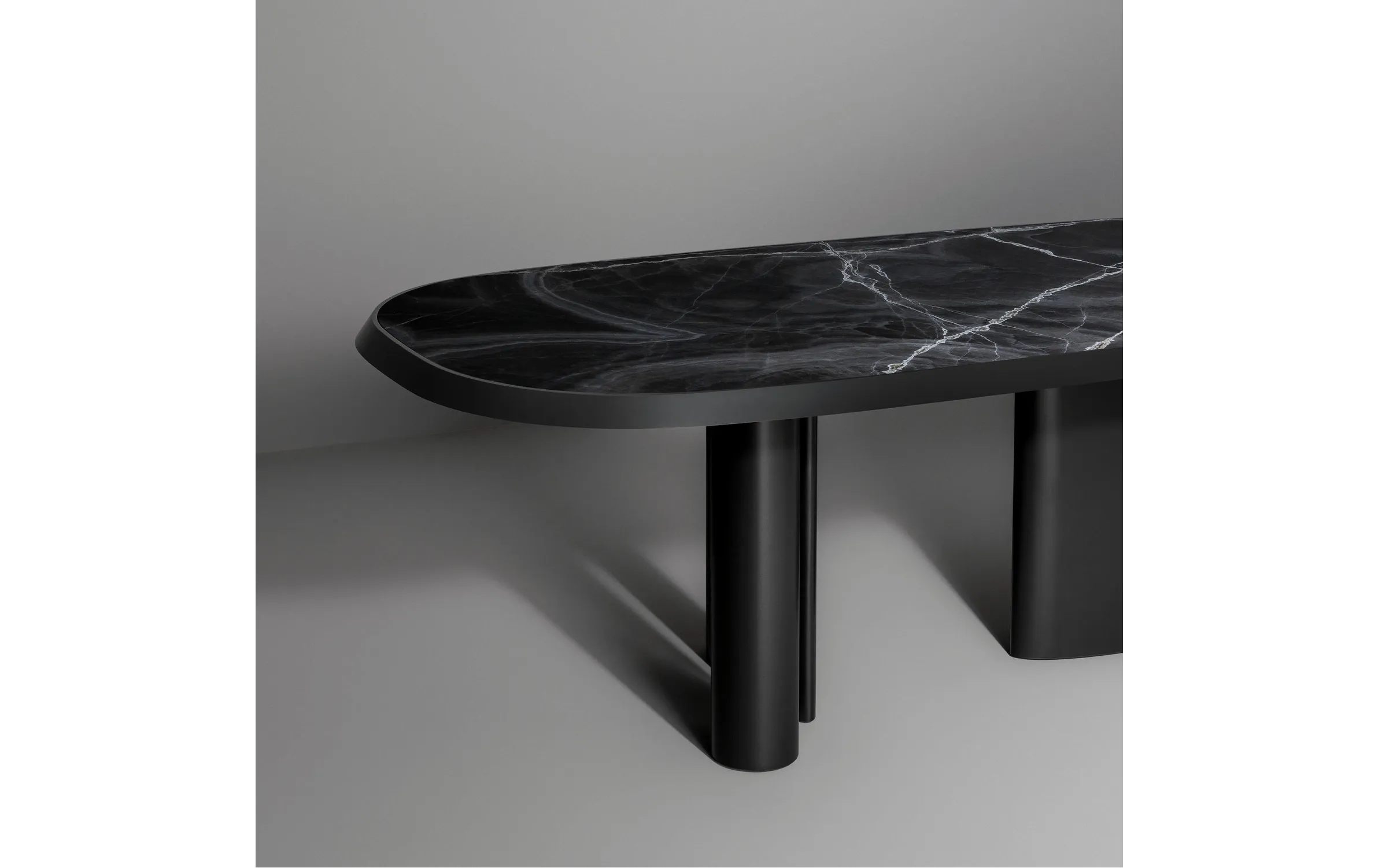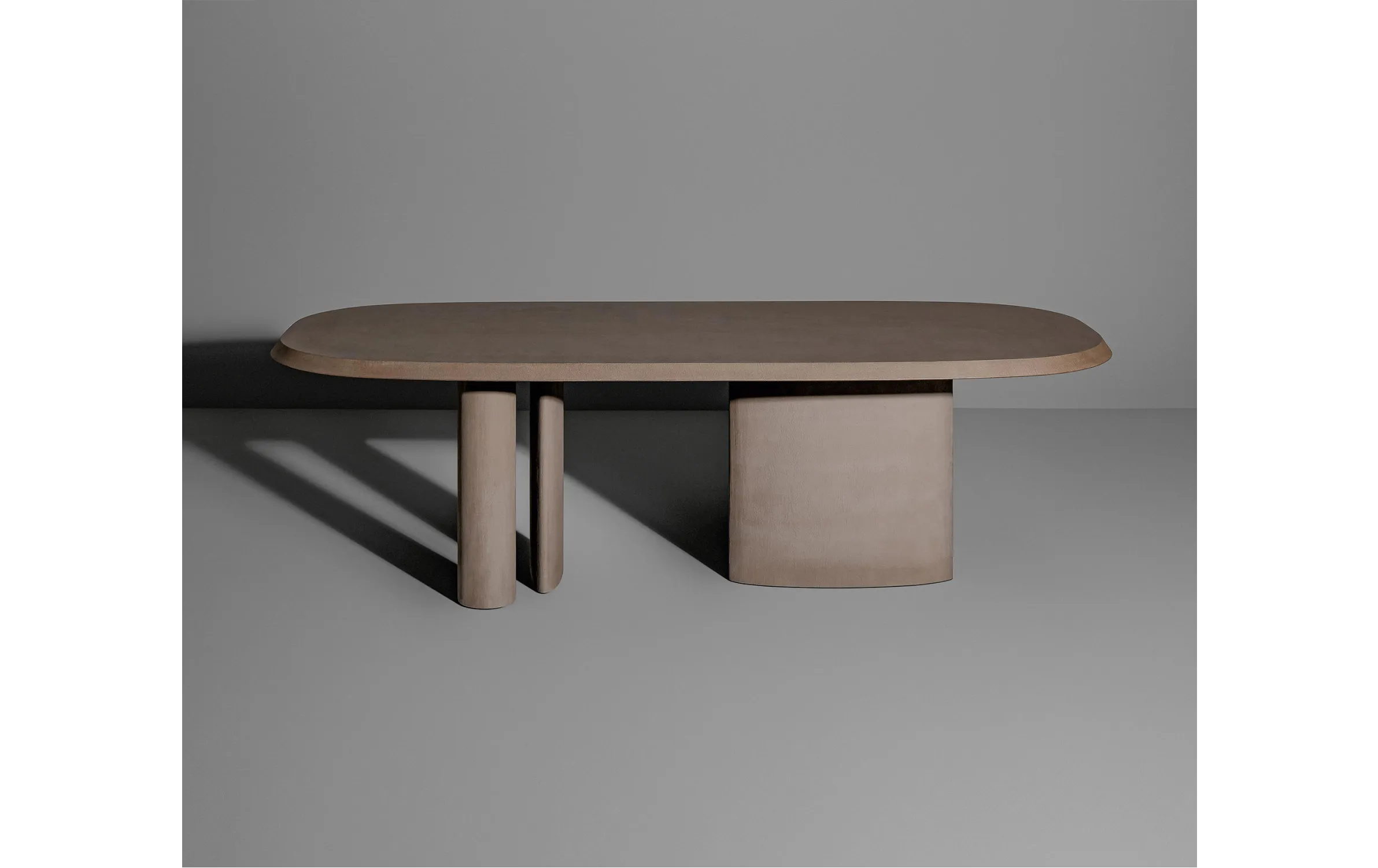 Стол Padiglioni от Алена Жиля черпает вдохновение в знаменитом барселонском павильоне, спроектированном Мисом ван дер Роэ. Центральным элементом этого стола является основание, состоящее из трех асимметричных элементов, каждый из которых имеет определенную форму и размещен в явно случайном положении, чтобы сделать композицию визуально динамичной. Именно из-за асимметричного характера основания любой, кто внимательно на него посмотрит, при перемещении вокруг стола заметит, что оно меняет свой вид в зависимости от угла, под которым на него смотрят. Таким образом, основание является важной частью стола и подчеркивается столешницей, линейная форма которой с ее сужающимся краем контрастирует с ножками и завершает общий образ. Асимметричный обеденный стол Padiglioni, история искусно достигнутых балансов и контрастов, взаимодействующих друг с другом, является максимальным выражением как творческих способностей Алена Жиля, так и производственных возможностей Bonaldo.