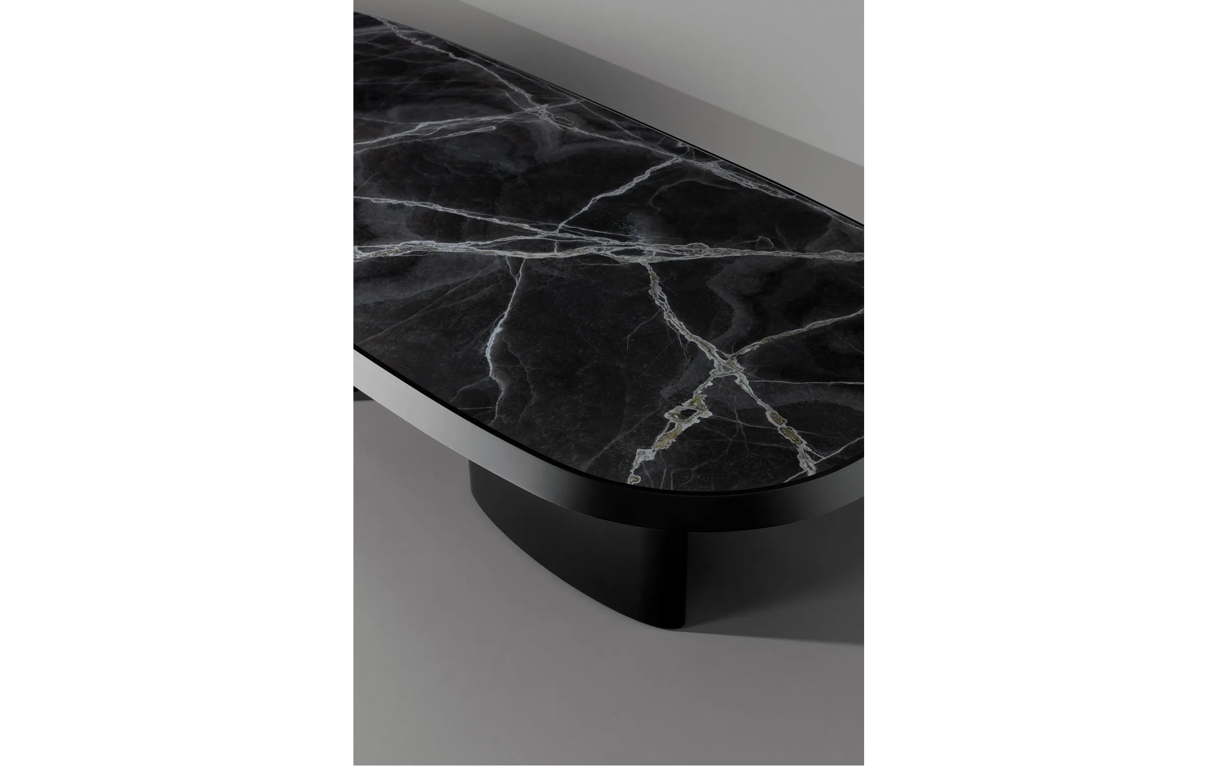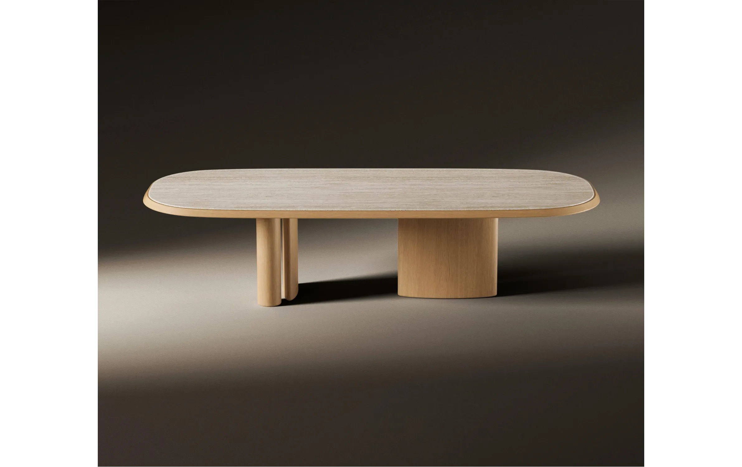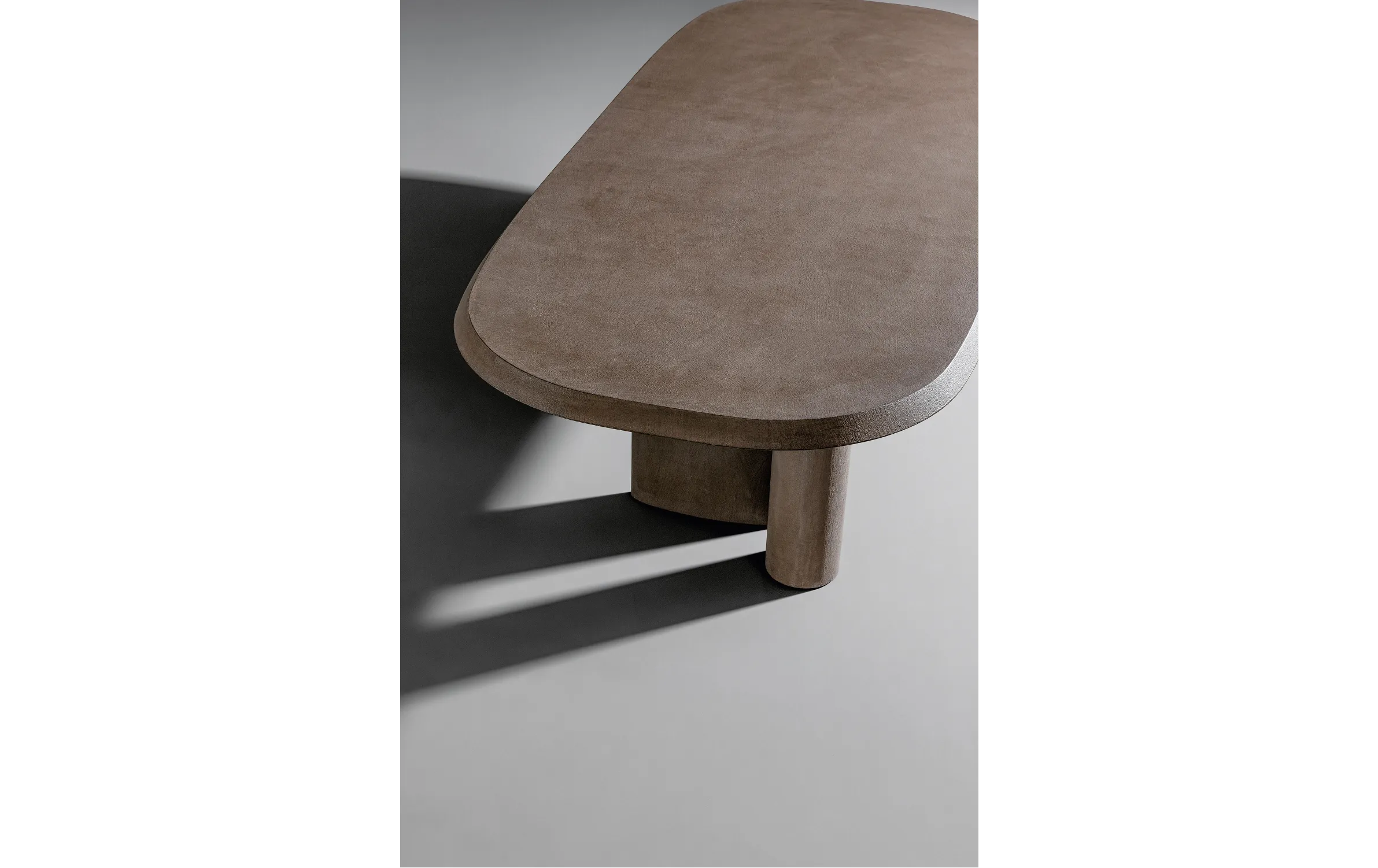 Стол Padiglioni от Алена Жиля черпает вдохновение в знаменитом барселонском павильоне, спроектированном Мисом ван дер Роэ. Центральным элементом этого стола является основание, состоящее из трех асимметричных элементов, каждый из которых имеет определенную форму и размещен в явно случайном положении, чтобы сделать композицию визуально динамичной. Именно из-за асимметричного характера основания любой, кто внимательно на него посмотрит, при перемещении вокруг стола заметит, что оно меняет свой вид в зависимости от угла, под которым на него смотрят. Таким образом, основание является важной частью стола и подчеркивается столешницей, линейная форма которой с ее сужающимся краем контрастирует с ножками и завершает общий образ. Асимметричный обеденный стол Padiglioni, история искусно достигнутых балансов и контрастов, взаимодействующих друг с другом, является максимальным выражением как творческих способностей Алена Жиля, так и производственных возможностей Bonaldo.