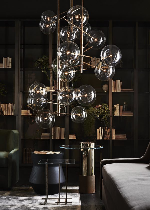 Лампа Bolle. Подвесной светильник со светодиодной подсветкой. 6 сфер из прозрачного хрусталя. Также доступно в версии с 4 сферами. Металлические детали из полированной латуни вручную. Латунь естественно окрашена и неровная. Это мастерство придает каждому предмету особую уникальность; делая его эксклюзивным. Высота может быть увеличена от 85 см (пузыри 6) и 73 см (пузыри 4) до 600 см (включая светящееся тело).
