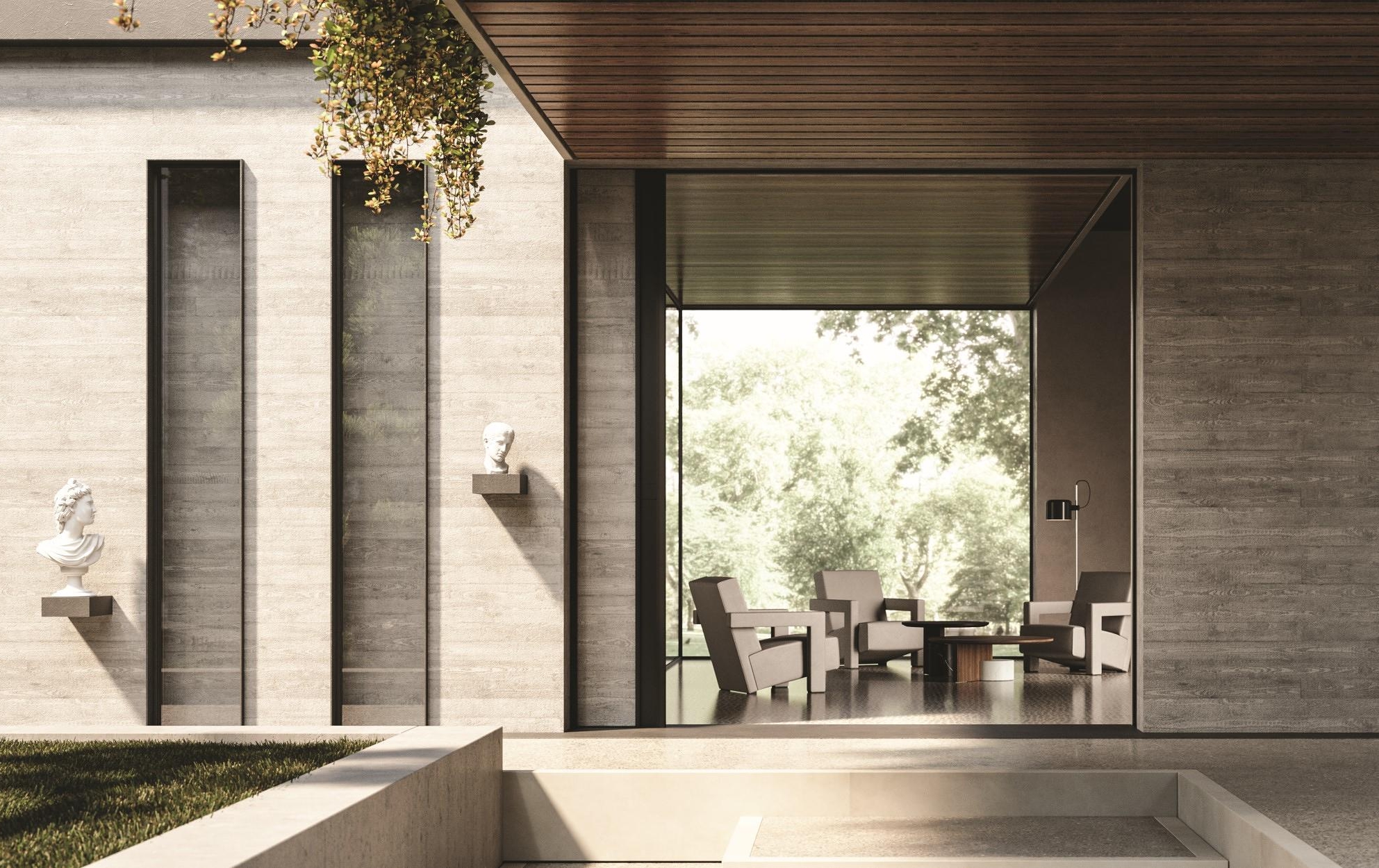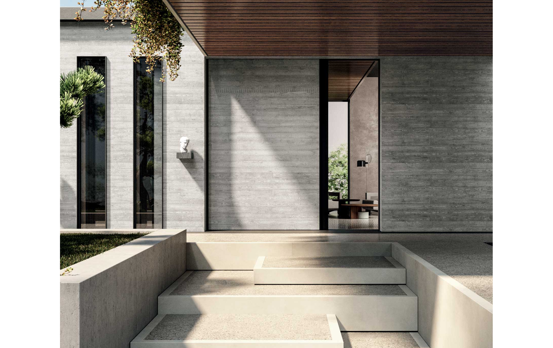 - Кастомизация: Доступны покрытия с вертикальными секторами из дерева, лака, стекла или грес-порцелана (Formwork Concrete в трех оттенках, Smooth Concrete в светлом и темном вариантах, Metallic Iron).