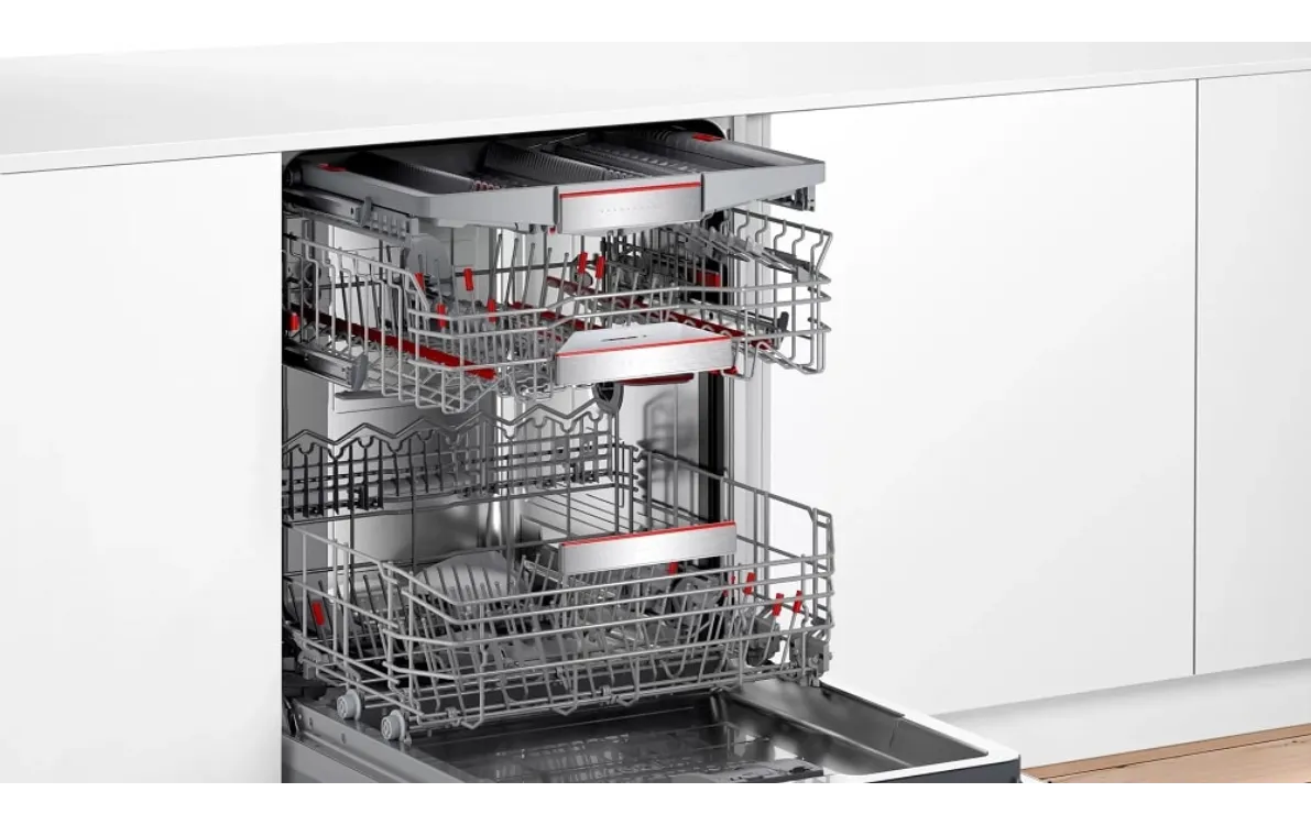 Встраиваемая посудомоечная машина Bosch SMH8ZCX10R с дистанционным интеллектуальным управлением через приложение Home connect. С технологией Home Connect вы можете настраивать и запускать мойку прямо со смартфона. Активируйте функцию Easy Start для автоматического выбора оптимальной программы в зависимости от типа и количества посуды, а также степени ее загрязнения. Функция «Счетчик таблеток» присылает в приложении push-уведомления, когда у вас осталось последние пять таблеток моющего средства.