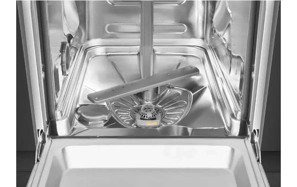 Конденсационная сушка посуды не требует затрат электроэнергии: вода с поверхности испаряется в горячем воздухе, конденсируется на стенках, а затем стекает в слив. Автоматическое открывание дверцы в конце сушки удаляет оставшиеся капли и не дает застаиваться воздуху. Верхняя корзина для размещения посуды регулируется по высоте. Во всех корзинах установлены держатели, которые служат для фиксации посуды во время мытья, а для столовых приборов предусмотрен отдельный лоток над верхней корзиной.