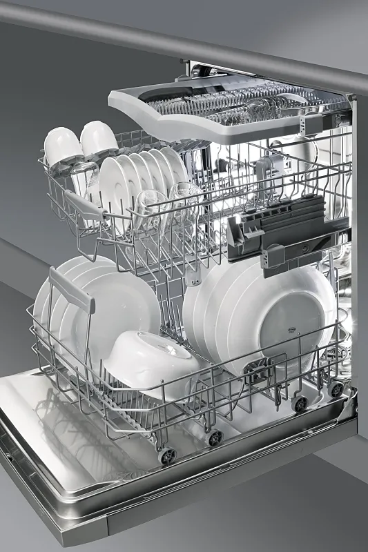 ДОСТОИНСТВА: высокая эффективность мытья и сушки; отличные энергосберегающие показатели; автоматический контроль жесткости и степени загрязненности воды; возможность половинной загрузки для обеих корзин.