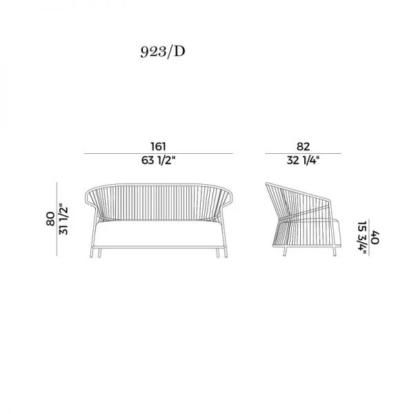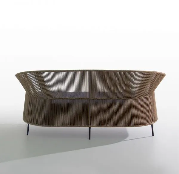 Новинка 2020 года! Диван OLA характеризуется формой огибающей спинки на металлическом стержне с легким ручным плетением “fly”.