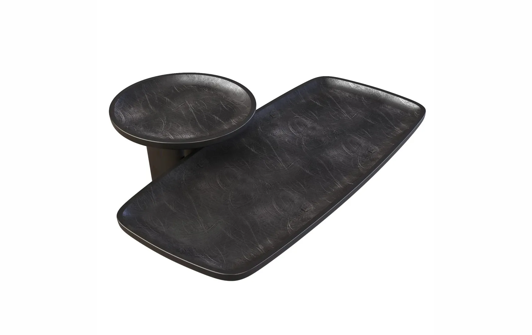 - Материалы и отделка: Массив липы с глянцевым черным лаком подчеркивает текстуру древесины, а матовая столешница с эффектом царапин добавляет тактильный контраст.