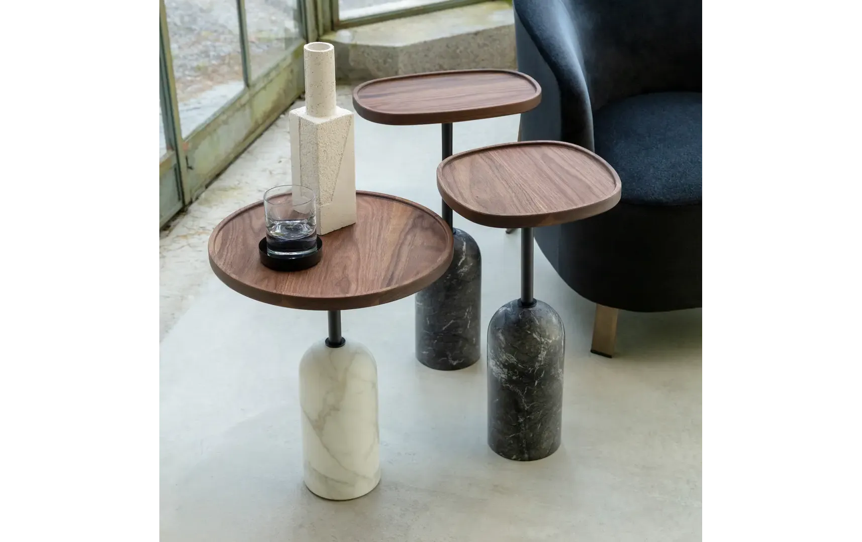 Ekero от Porada — это современный журнальный столик из коллекции Archipelago, созданный дуэтом дизайнеров Staffan Tollgard и Filippo Castellani. Вдохновленный островом Oak недалеко от Стокгольма, Ekero воплощает концепцию «материала в материале», где массивная столешница из ореха Canaletta опирается на прочное основание из белого каррарского или серого карникского мрамора через центральную металлическую ножку. Доступный в круглой, квадратной или овальной форме с тремя вариантами высоты, этот столик идеально вписывается в современные гостиные, добавляя утонченности и функциональности.